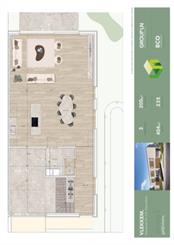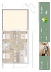 Deze half-open moderne woning (woning 3) is gebouwd volgens de BEN-normen en heeft een bewoonbare oppervlakte van 200m² en een perceeloppervlakte van 404m².